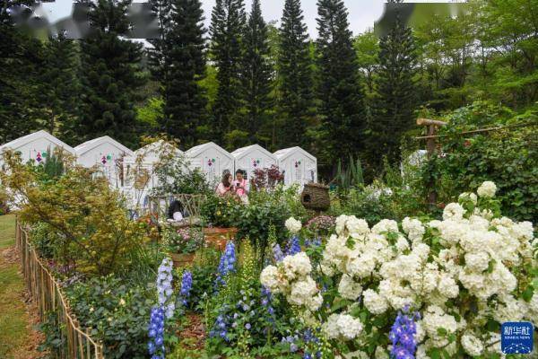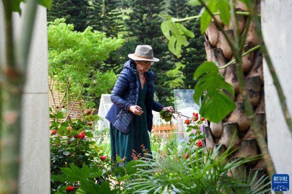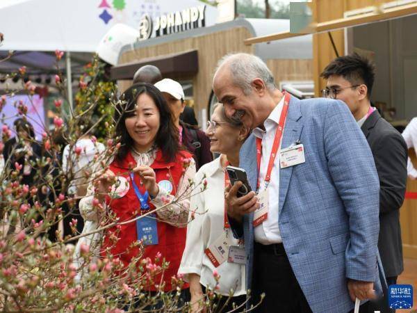4月8日,外国嘉宾在2023粤港澳大湾区花展现场赏花。