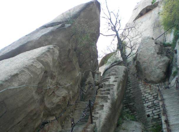 百尺峡,其凶险程度和千尺幢有些相似,四面八方被斧子给劈开,坡度垂直将近90度,游客攀爬最能扶着两旁的铁锁链,游客攀爬百尺峡时,尽量不要回头看,不要试图走下坡路,这种接近垂直的走道,走下坡路比上坡路更难,有些游客看到坡度都会手心冒汗了,更不是这样垂直走下来。值得提醒的是,在人多的时候,尽量不要跟着太近,这样才能更加安全。