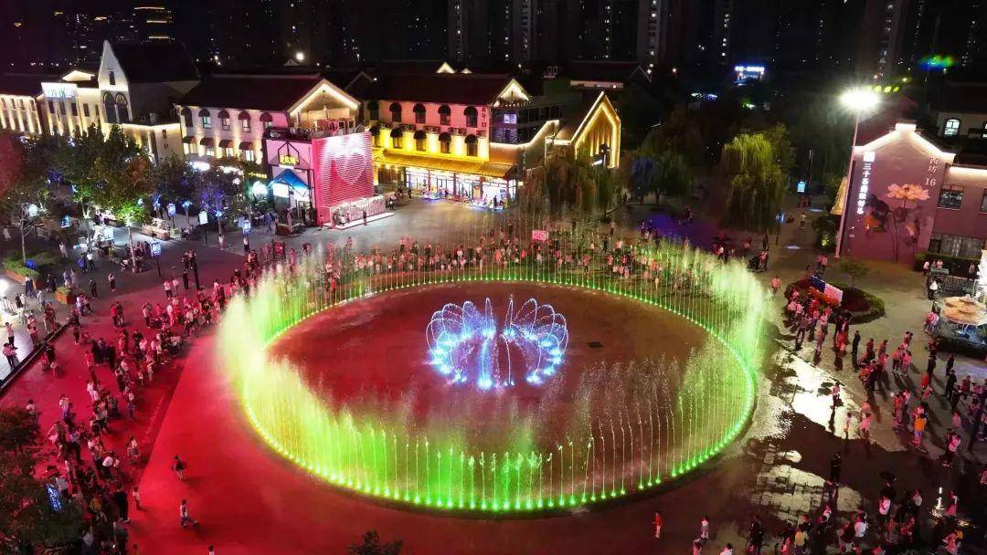 经过水花的折射,独特的光影显得格外梦幻。走近喷泉,仿佛进入了一个朦朦胧胧的梦境。精致的灯光设计,变幻多彩,在泉水的翩翩起舞下,时而像一朵莲花,时而像一个皇冠。
