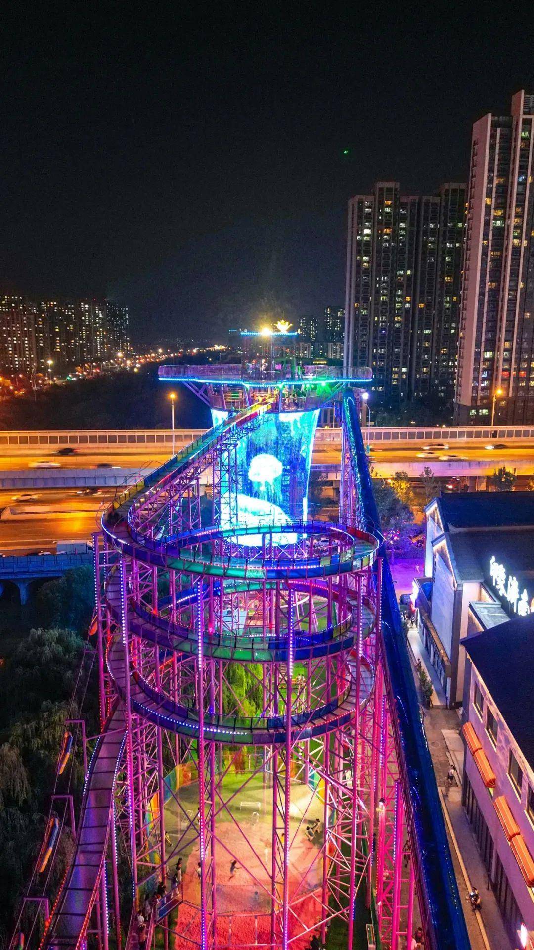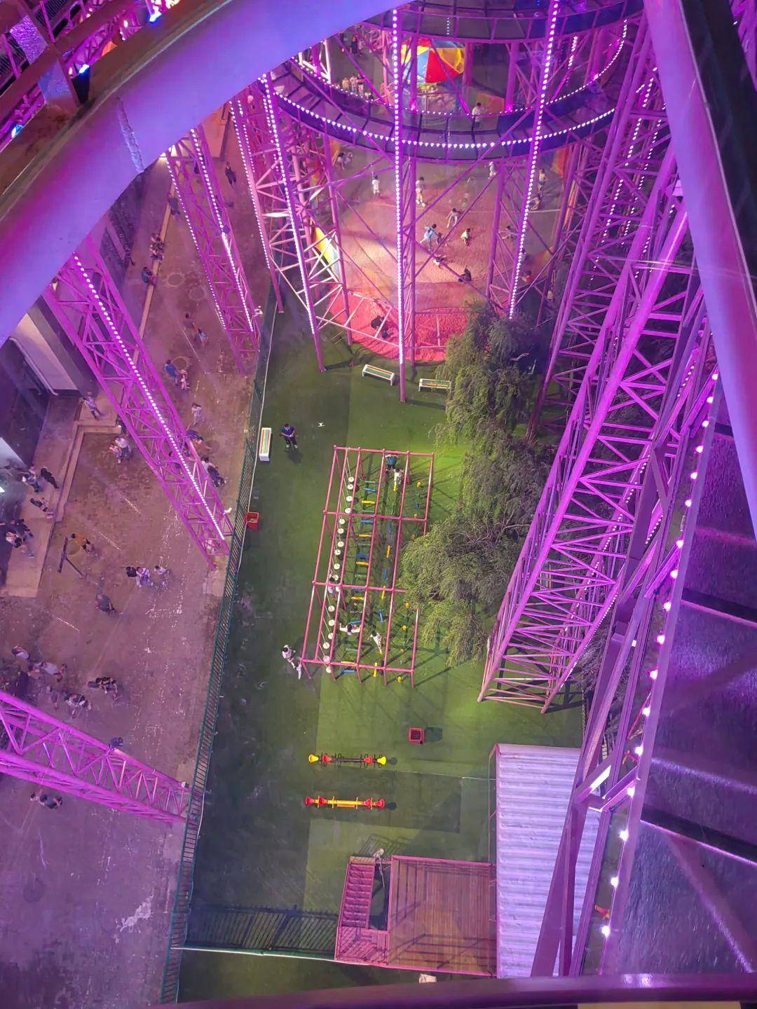 喜欢刺激的朋友一定要到塔顶顶部,这哪里是滑道,简直是玻璃“栈道”呀!一个中心圆盘和4个花瓣,再加上花瓣直接外伸1米的无边际玻璃平台,保准让你震撼到尖叫,从此,俯瞰济南西部有了新角度。