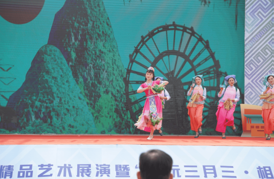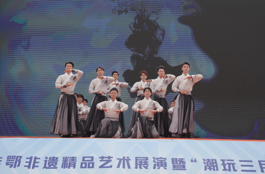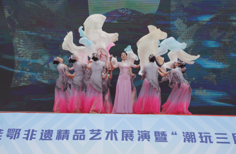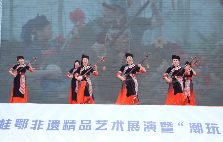 本次活动精选19个具有桂鄂两地非遗元素的精品舞台节目,通过民族歌舞、戏剧杂技等形式多元化呈现非遗魅力。“唱山歌,这边唱来那边和……”国家级非遗项目那坡壮族民歌《壮美春江水》、国家级非遗项目瑶族蝴蝶歌《瑶歌一唱亲上亲》、新民歌《春暖花开踏歌来》、歌曲《一路歌唱》的悠扬旋律把汉口江滩变成了歌的海洋,仿佛把现场观众带到了“三月三”壮族歌圩的现场。天琴是壮族最古老的拨弦乐器,属于国家级非物质文化遗产,器乐表演唱《天琴姐妹》中,歌手们手挽琴弦、脚摇铃铛,边弹边唱,琴声相和,琴铃悦悦,动人心弦。而另一个器乐表演京族独弦琴艺术,亦是国家级非物质文化遗产,此琴一弦可成曲,时而清亮悠扬,时而婉转悠长,引来游人纷纷注目。中国电信武汉艺术团带来的融国画、书法、太极等“国潮”元素于一体的男子群舞《国风墨韵》和湖北优秀青年歌手万莉带来的歌舞《汉绣》,生动展现了中华优秀传统文化历久弥新、传承不息的力量。