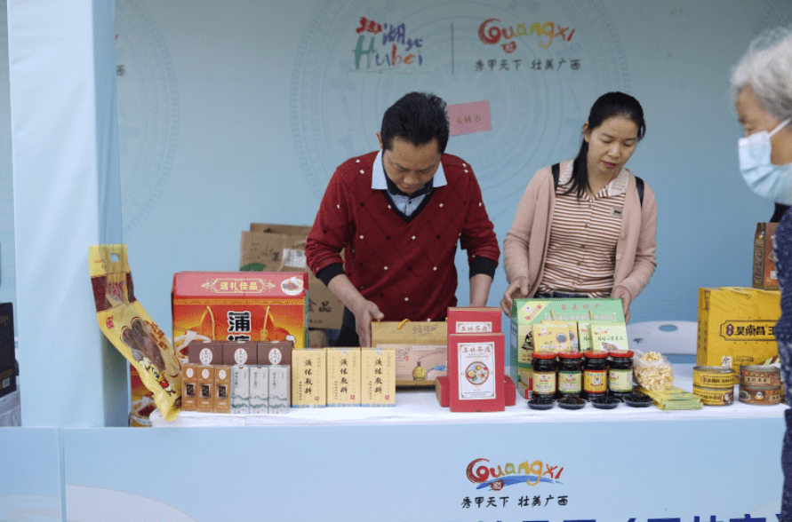 六堡茶、油茶、绣球、麽乜……数十个展位上摆满了种类繁多、五彩缤纷的广西非遗精品、旅游产品。其中,既有作为“中国茶习俗”的组成部分列入联合国教科文组织人类非物质文化遗产代表作名录的六堡茶制作技艺、瑶族油茶习俗,还有壮锦、绣球、贝雕、京族服饰等一批国家级非遗、自治区级非遗产品,包含了手工艺品、文创产品、美食、服饰等多种品类,让人目不暇接。南宁市青秀区、良庆区特装展区和“潮玩三月三 相约游广西”美陈打卡点等现场装置,以青绿山水为底色,缀以花山岩画图样、壮锦纹饰、风景大片等广西元素,引起了往来行人的注意,不时可见市民游客驻足于此,互相拍照留念。广西有壮、汉、瑶、苗、侗等12个世居民族,在历史的长河中积淀了五彩斑斓的民族文化和民俗风情,非物质文化遗产成果丰硕,自治区级非物质文化遗产达到914项,70项入选国家级非物质文化遗产名录,其中有三个项目列入联合国教科文卫组织人类非物质文化遗产代表作名录。此次活动,来自广西14个设区市的相关部门、文化企业、旅游企业、非遗工坊、非遗代表性项目传承人携带旅游精品线路、景区景点介绍以及全区各地特色旅游商品、非遗商品、文创商品等,借助魅力武汉这个窗口向国内外游客宣传广西特别是首府南宁的旅游好景、非遗好物和旅游好礼,热情邀约大家“潮玩三月三 相约游广西”。