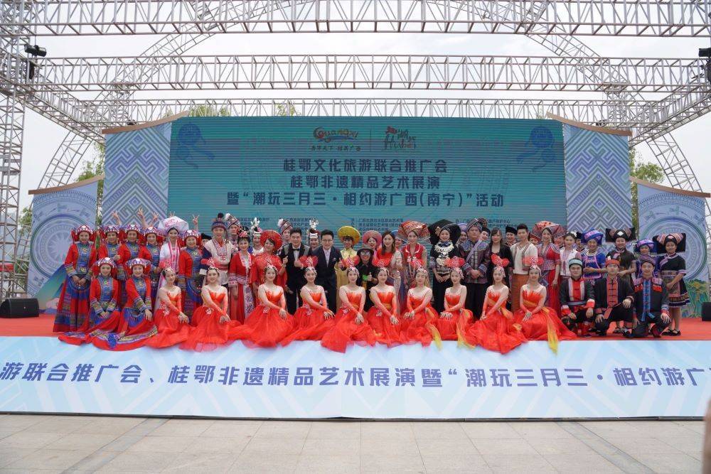 本次活动由广西壮族自治区文化和旅游厅、湖北省文化和旅游厅、南宁市人民政府主办;广西旅游发展集团、广西文化产业集团、广西旅游协会、湖北文化产业发展投资有限公司、湖北省广西商会联合主办;广西壮族自治区群众艺术馆、湖北省群众艺术馆 (湖北省非物质文化遗产保护中心)、武汉市群众艺术馆、南宁市文化广电和旅游局、南宁市青秀区人民政府、南宁市良庆区人民政府承办;广西非物质文化遗产保护中心、广西非物质文化遗产保护发展协会协办。桂鄂两省区各级文化和旅游部门负责人、旅游协会代表,以及南宁市青秀区、良庆区人民政府相关负责同志,湖北省广西商会广西籍驻武汉人士及相关企业代表、桂鄂两省区非遗企业、非遗传承人代表,各新闻媒体记者近300人参加活动。