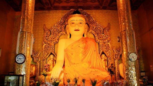 缅甸,是个佛教国家,曾经在历史上也把佛列为国教,这也遗留下来非常多的佛教建筑。缅甸有许多的寺庙建筑,大部分寺庙里的佛像是用金装或者泥土来做成的,金装佛像可以说是很常见的,可戴眼镜的佛像是不常见的,就在当地有尊佛像引领着时尚的潮流,为何这样说呢?纵观亚洲,可以说戴眼镜的佛像是少之又少,这样突然出现这么一个佛像,当然会觉得很新颖了。