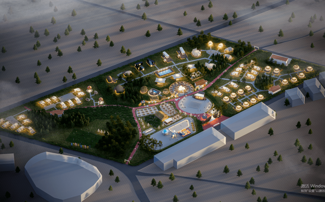 露营地位于关城里景区‘演艺中心’西侧,白鹿隐居度假酒店南侧,占地约42500㎡,设计有帐篷33顶。倡导一种“崇尚自然、环保健康、绿色和谐、乐活自由”的理念。营地区域规划以户外体育区、自搭建营区、中心活动区及三大露营区为主,建筑风格借鉴了传统四合院、木塔等建筑形态,是现代与老的交相辉映的体现,同时,融入当地民族服饰、陇剧、泥塑、剪纸等艺术元素进行住宿单元的软装配饰、力求触动客人追逐文化体验的休闲度假需求。