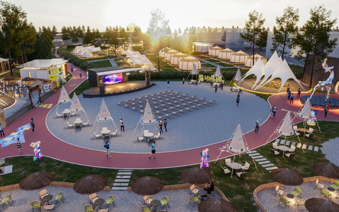 营地设有服务接待中心、活动广场、巨型天幕、咖啡厅、篝火台、卫生间、盥洗室等贴心配套设施,并引入甘肃特色美食、冰淇淋、烧烤等商业服务配套,是集帐篷酒店、野奢餐饮、亲子露营、聚会团建、主题定制、城市微度假六大功能于一体的城市新生活文化旅游项目!