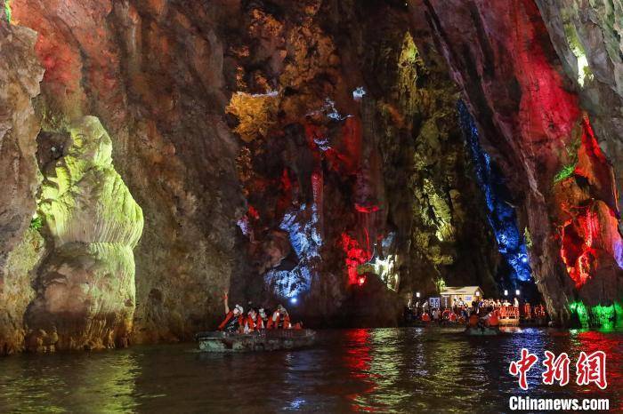 图为游客乘船游览贵州龙宫景区。中新社记者瞿宏伦 摄
