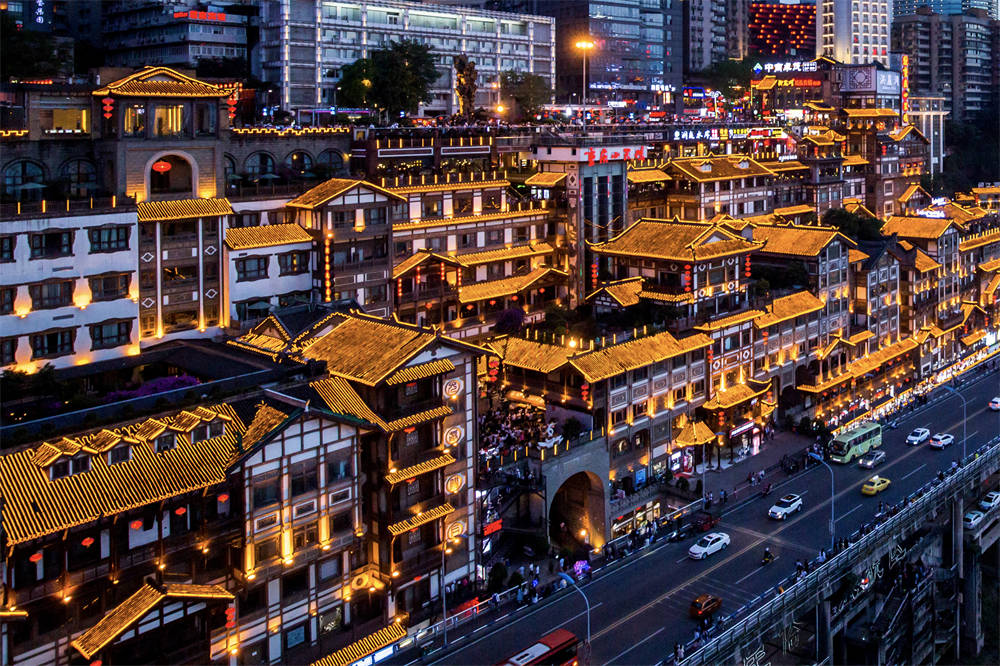 第一个自然是洪崖洞。洪崖洞号称重庆版的千与千寻,颜值真的没话说。这里面朝江北嘴CBD,脚下就是长江,千厮门大桥车水马龙,到了晚上灯光一开真的如梦如幻。除了人太多,跟挤菜市场似的真的没毛病。另外拍洪崖洞其实有很多机位,大家可以在周边多走一走,或许就能拍到超棒的视角。