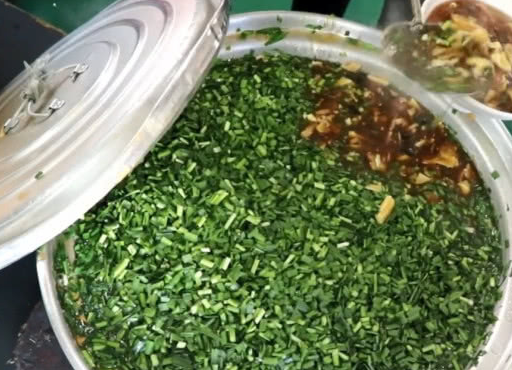 刚走进店里,就能看到老板已经煮好了一大锅卤汁,上面撒了一层韭菜末,看卖相就感觉很有食欲了。而这面条都是现切的,然后放到大锅里煮熟,再捞到碗里,加满卤汁,舀一点生的韭菜末,这就可以上桌了。像这样一碗打卤面十块钱,感觉还是挺实在的,因为用筷子一搅拌,这卤汁可比面条还多呢。