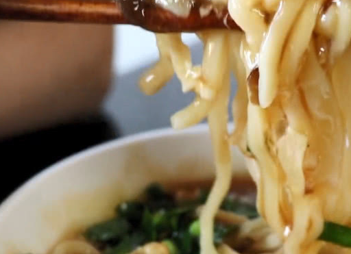 再来看看着卤汁,配料可是很丰富的,有大块的猪肉、香菇、木耳、鸡蛋、腐竹等等,吃起来味道咸鲜,质地比较粘稠,所以搅拌之后,每一根面条就会裹上卤汁,吃起来咸度刚刚好,而且带有一点辛辣味,口感还是很不错的。还有这面条,虽然看起来很一般,但吃着劲道十足,满嘴都是面香味,很得劲。