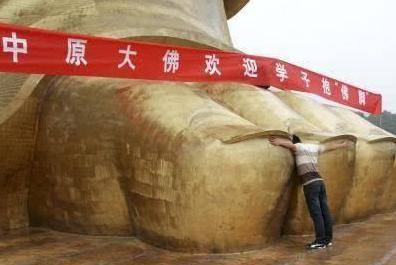 伙伴们,你们知道世界第一高大佛----中原大佛在哪里吗?这座中原第一大佛斥巨资十二亿打造,佛像身高为108米,总高可达208米。它位于河南省平顶山市底下一个县叫做鲁山县,在那里有一个尧山佛泉寺,我们的第一大佛就在那里。这座中原大佛所在的景区在2011年被评为国家5A级旅游景区。随之而来的就是门票钱直接涨到了120元。来往游客们戏称:“掏不起的门票拜不起的佛。”