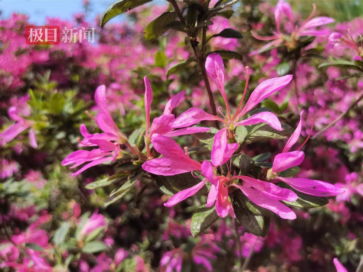 青山公园副主任段丽华介绍,精品园中还有一年能开三季的杜鹃,分别是小巧绚丽的深红色杜鹃“红皇冠”,清秀典雅的粉红色重瓣杜鹃“王妃”,舒展轻巧的单瓣深粉色杜鹃“粉丝带”。去年它们在园中首秀收获了不少点赞,今年它们仍会在初春、仲夏、深秋三季绽放,让杜鹃园春意长存。此外,一人多高的映山红杜鹃格外打眼,去年它是精品园内的网红打卡杜鹃。