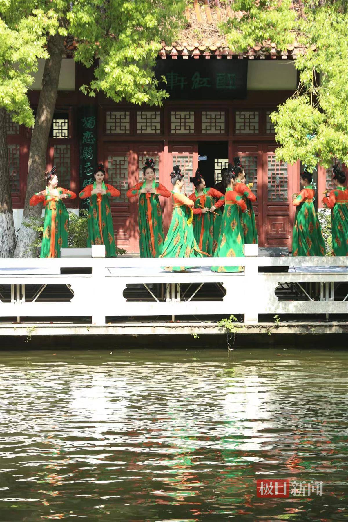 当天“美”上热搜的《唐宫夜宴》舞也来到了青山公园,憨态可掬的唐朝小乐伎,耳目一新的唐装服饰,绯红绚丽的“斜红”妆容等,完美呈现出一幅“盛唐夜宴图”。火爆全网的《只此青绿》今天也被搬到了国风游园会的舞台,青鸾漫舞、山川迭起,仙子一样的小姐姐们为大家演绎了一场惊艳的山水画卷。
