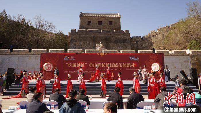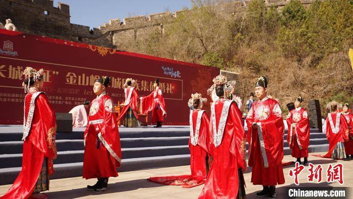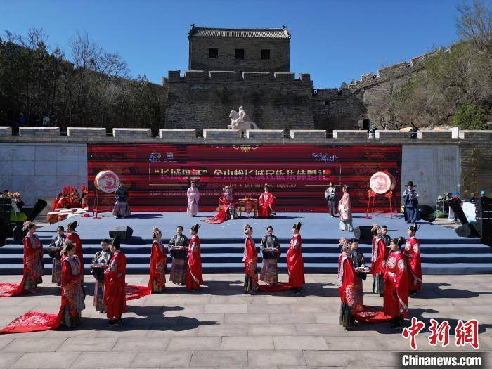 金山岭长城上的明制婚礼秀表演。 梁志青 摄