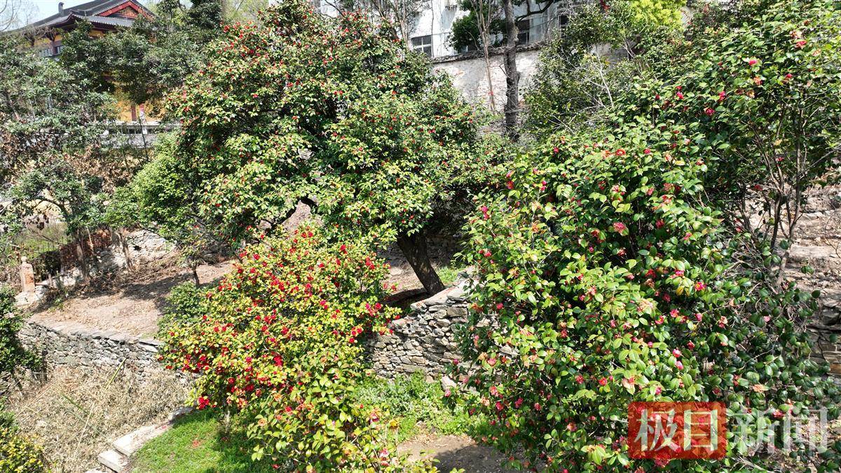 唯有山茶偏耐久,绿丛又放数枝红。近日,记者见到这棵古山茶时,一树繁花红似火,招蜂引蝶,还有花苞正冒出,从旁有一片山茶林陪伴着它。