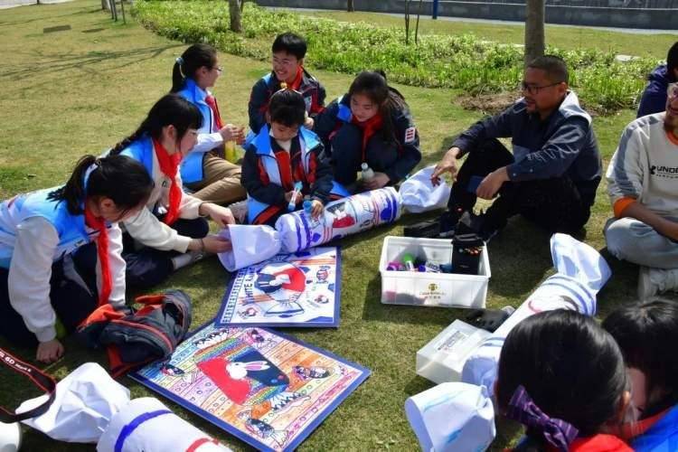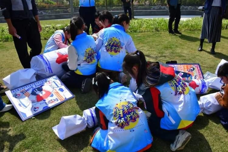 学生们用废弃的塑料圆桶,制作成巨型“大白兔奶糖”。在《大白兔奶糖绘画》上,学生用彩绘画出奶糖外观的花纹与色彩特色,让人记忆犹新。