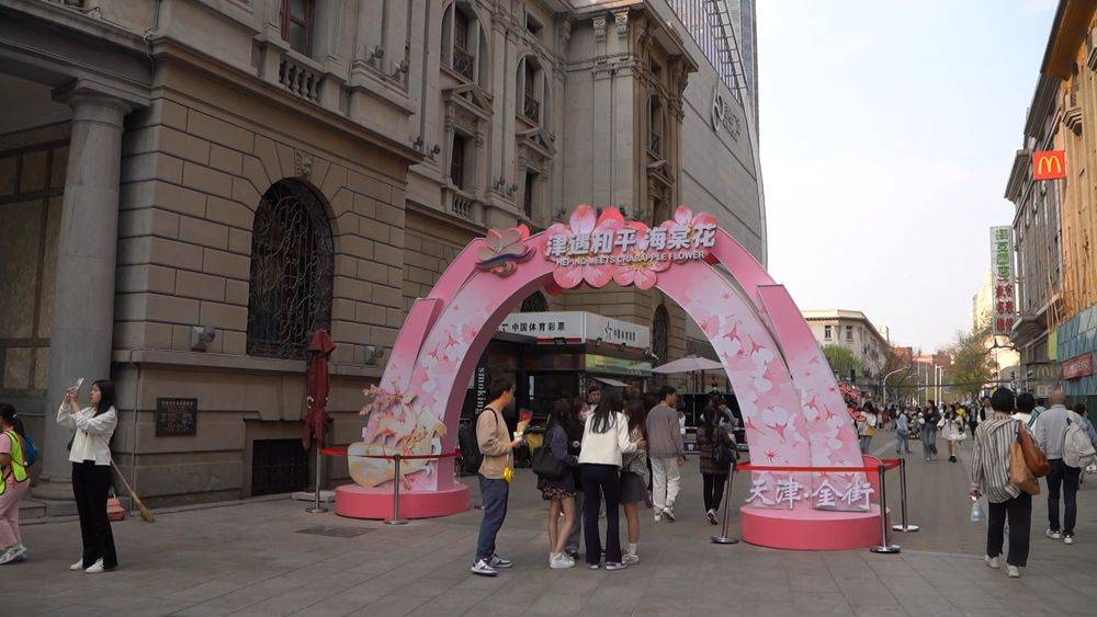 走进天津市和平区金街商圈,海棠花主题美陈随处可见,将步行街、大型商场装扮一新,人流如潮、购销两旺。此外,商圈以“海棠花节”为契机,举办汽车展销、外贸展销、消费帮扶展销等活动,受到广大消费者欢迎。
