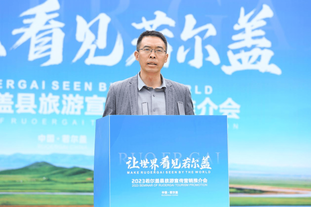 若尔盖县委常委、若尔盖县人民政府常务副县长赵寿春在致辞中表示:“在这春暖花开、万物昂扬的美好时节,我们齐聚‘天府蓉城、休闲之都’,隆重举行2023年若尔盖县旅游宣传营销推介会,让世界看见若尔盖,共同品游生态高原、共同品赏藏地风情、共同品味诗画若尔盖。我们诚邀您共享‘黄河九曲第一湾’的蜿蜒逶迤,感受‘白日地中出,黄河天外来’的大气之美。登高远眺,但见她风姿绰约、款款而来,蜿蜒而去,似哈达,似玉带,似长龙,似飞天飘带,从天之尽头飘然而来。”