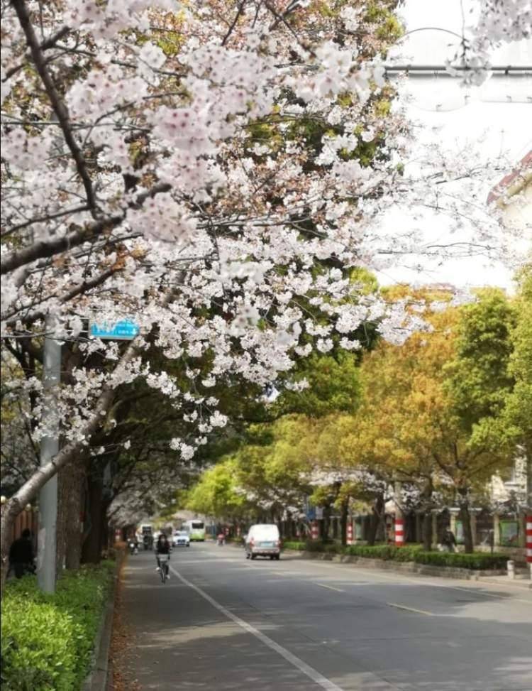 新二路上的樱花盛大而茂密,仿佛飞雪在枝头连缀成片,一眼望不到头。