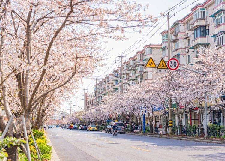 工业硬朗风的智慧湾,藏着一条樱花街,一秒就能定格春日瞬间。