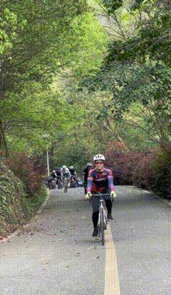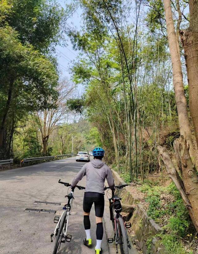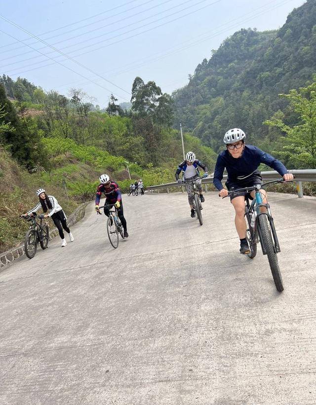 山地车骑行,真叫一个爽,公路车就有点难受了,李会长的车就因此爆胎了,哈哈哈哈……