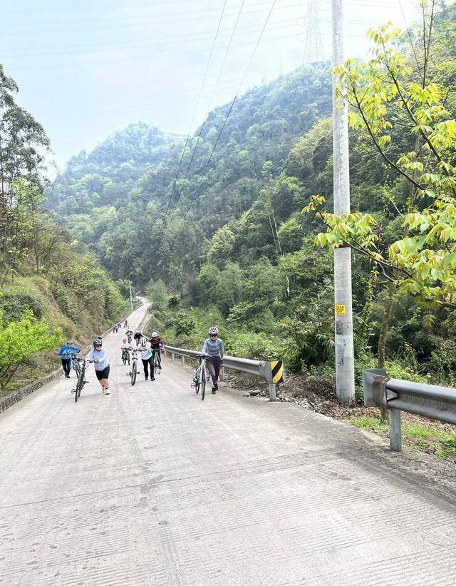 途中经过起起伏伏的山路,直到此次挑战最大的上坡,好些骑友在这里败下阵来,不得不推车上山。