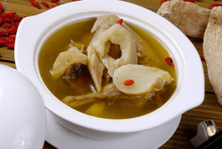 黄山炖鸽,是用新鲜宰杀的乳鸽,加上黄山特产的山药小火炖煮,汤鲜味美,营养丰富,鸽肉吃起来特别鲜嫩,还有健脾养胃的作用。