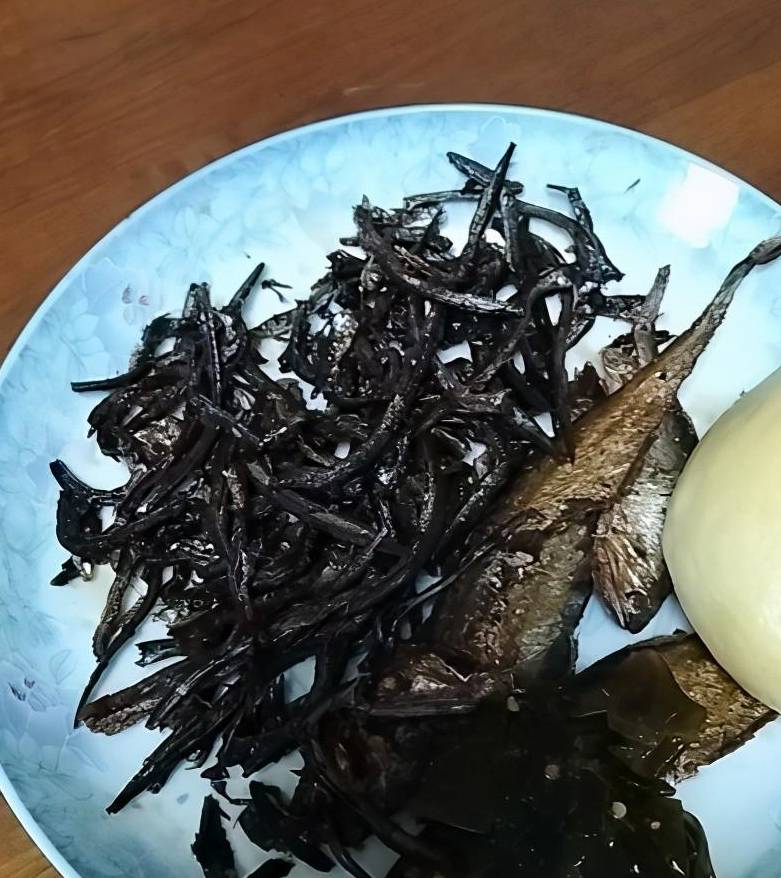 今天,岳母大人也把卖来约一年多的小干鱼拿马勺烤了,还特别做了一白锅掺了白面的饽饽。但是,鱼的外表烤得黑黢黢的,颜值较差。这可能与我哥使用的一样烤具所产生相同的效果。虽说没有烤饽饽片相配,我却吃得津津有味,还给我儿子拍了一张相片,重温几十年前的味觉的记忆。