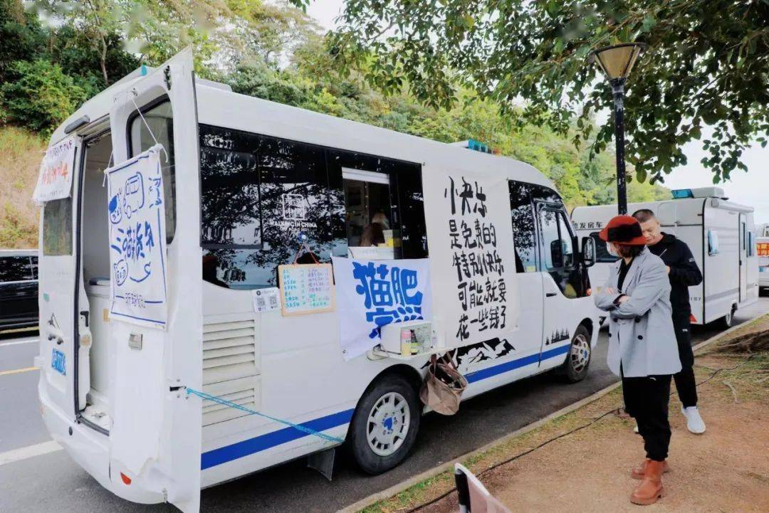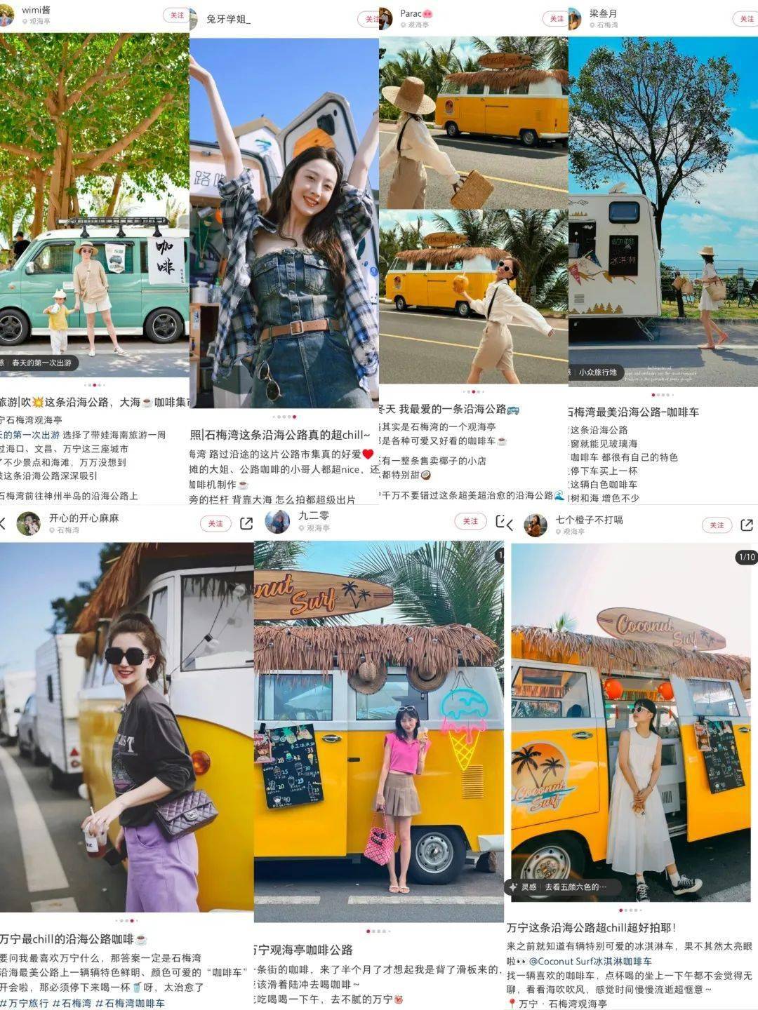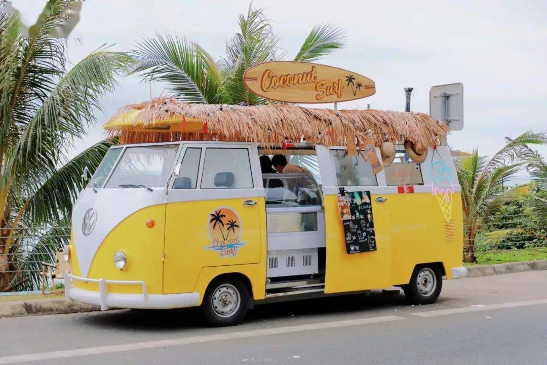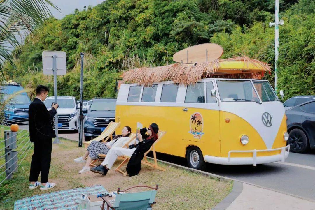 在万宁的南燕湾观景台处,一到下午,十几辆美食车鱼贯而入、大车小车、五颜六色,停在沿海公路边,仿佛走进了漫画世界。