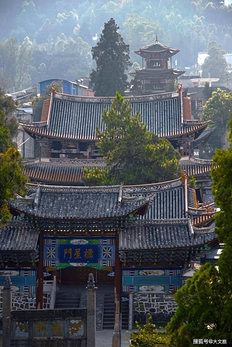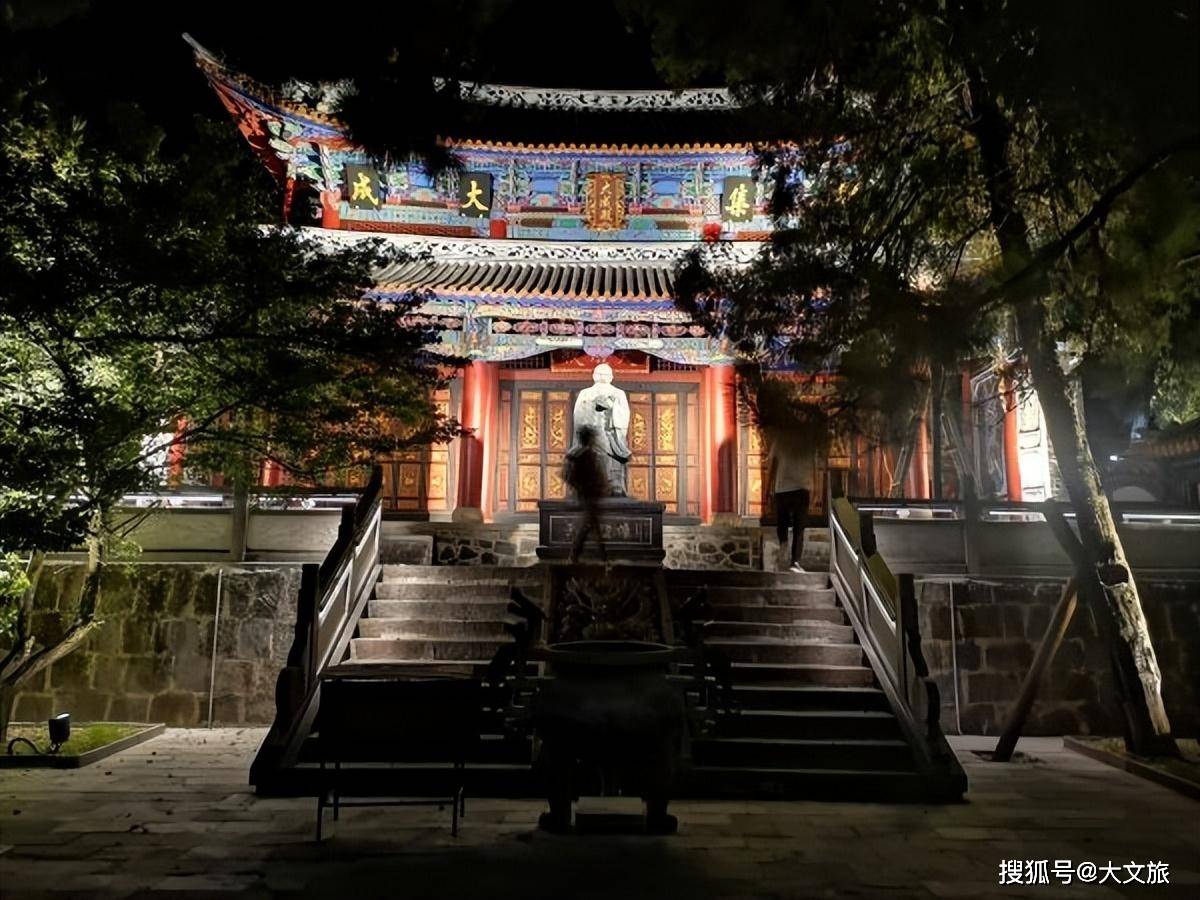 文庙,凤庆的历史及文化象征和缩影。12000平方米的建筑群,显现出大气、古朴、宏伟、幽深的风格。采用中轴对称,台阶式院落递进格局手法,将各单体建筑大门、泮池、龙门、灵星门、大成门、大成殿、崇圣祠、魁星阁等建筑井然有序地安排在最佳位置,百年古松柏、石刻碑文点缀其间。