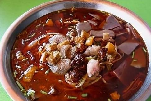 肠滉面是一道以肥肠、猪肉丁、水煮鸡蛋面、鸡汤等为主要食材制作的美食。肥肠加调料煨泡,猪肉丁炸成脆哨,另以水煮鸡蛋面,加鸡汤、猪血、肥肠、脆哨,淋调料而成。汤色鲜红,面条脆细,味道浓香,肉哨脆香,虽辣不猛,非常好吃。