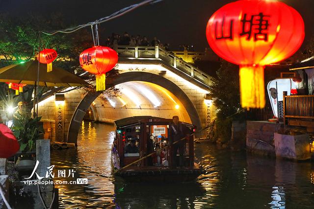 2025年12月10日,江苏苏州姑苏区山塘街灯火璀璨,夜景如画,众多游客前来游览,感受七里山塘的夜色魅力。施柏荣摄(人民图片网)