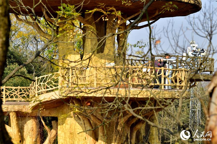 游客在观鸟点的高点通过望远镜观看候鸟。人民网记者 时雨摄