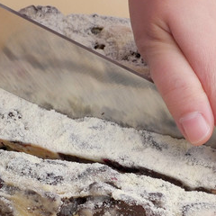 4,攪拌均勻後,可以帶上一次性手套,來回的拉扯整形,然後趁熱倒入不沾烤盤中,再次整形壓平,趁著餘溫,撒上奶粉,或抹茶粉,巧克力粉,(如果是做的奧利奧口味的就不要在撒巧克力粉瞭,多撒奶粉口感好)根據自己的喜好瞭。待到雪花酥放涼後即可切塊,開吃瞭。