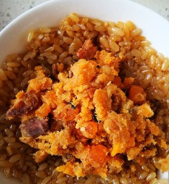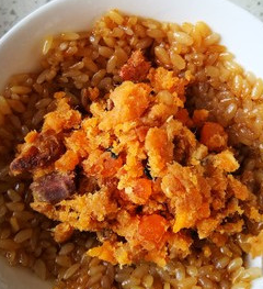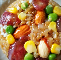 咸鴨蛋黃肉松八寶飯的做法如下: