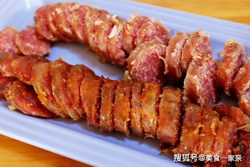 臘腸軟硬度剛好,嚼起來很香,五香味的孩子們吃,辣味的大人吃,各取所需,傢裡備有香腸,即使沒什麼準備,也能很容易準備出一盤肉菜來。