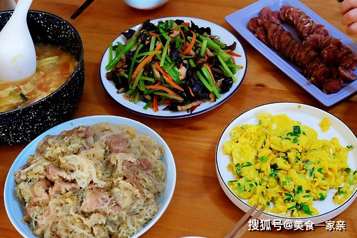 傢裡還有點兒菜,就沒有再出去采購,都是經常一起吃飯的朋友,也無須客套,傢裡有什麼就做什麼瞭。兩個媽媽三個娃,一共五個人,準備瞭四菜一湯:芹菜木耳炒肉絲,香蔥炒雞蛋、豬肉酸菜粉絲、蒸臘腸,還有個番茄雞蛋湯,主食是白米飯,都是簡單的傢常菜,孩子們還都挺喜歡吃的,很快就一掃而空,吃的飽飽的,做法分享一下,各位看看這桌傢常便宜飯可還行。
