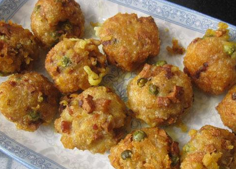 武漢的糯米雞與廣東糯米雞沒啥關系,制作方法一點都不一樣,最最要的是,武漢糯米雞裡是沒有雞肉的!之所以稱之為糯米雞,是因為糯米團裹著面糊下油鍋炸過之後,表面毛刺縱橫,坑坑窪窪,金黃色表面遠看真的很像炸雞,因此被稱作為糯米雞。