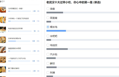 二妹前幾天寫瞭一篇關於“來武漢必吃!這八種快要消失的老味道,第五種現在真的很難吃到”的推文,分別介紹瞭武漢過早的美食小吃:油香、苕面窩、糯米雞、米粑粑、雞冠餃、汽水包、酥餃和剁饃這八種武漢過早界的老味道,並在文末對武漢過早這八種老味道中的No.1做瞭個調查。通過兩個網站的數據,二妹得到瞭一些結果。