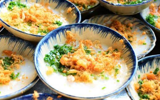 用薑黃和椰奶調味的米粉制成,被越南人稱為“油炸蛋糕”,這道越南菜裡面裝滿瞭豆芽、豬肚切片和蝦