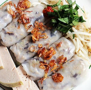 這種卷餅不同於一般的越南春卷,它是半透明的米粉卷蒸制出來的,裡面裝滿瞭碎豬肉和木耳。