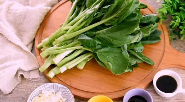 1.·食材·菜心180g、大蒜20g、鹽1g生抽10g、香油10g、芝麻5g、蠔油15g