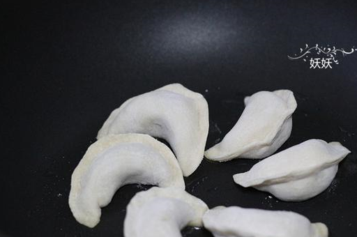 4,不粘鍋中刷一層薄薄的油,下餃子進去煎。