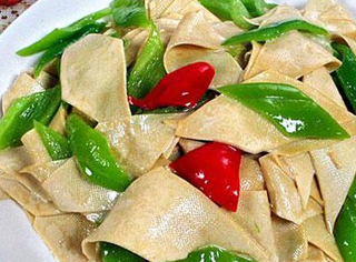 第二個地道的東北下酒菜就是尖椒幹豆腐皮。雖然說這樣的一道下酒菜看起來是沒有什麼出彩的地方的,但是他們喜歡的這樣的豆腐皮是幹的,而且用這樣的幹豆腐皮制作出來的,這樣的一道下酒菜是越嚼越香,尤其是配著白酒來喝,真的是讓人一口酒一口豆腐皮停不下來的節奏。
