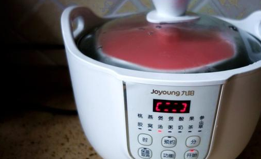 3、通上電源,選擇煲湯程序,點擊開始銀耳湯就開始熬制瞭,需要註意的就是桃膠雪燕皂角米熟的時間不同,所以需要下鍋的時間也不同;