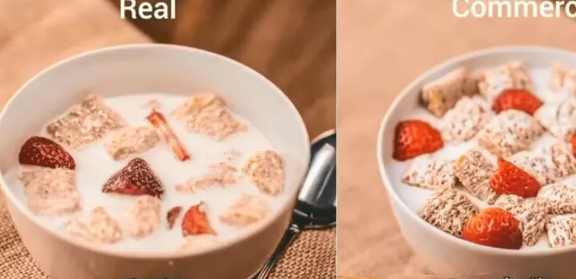 甚至在一些廣告拍攝中,為瞭讓食物達到理想中的引誘性,拍攝者會不惜使用各種技巧,甚至“造假”。