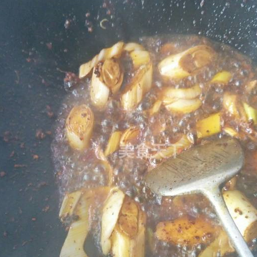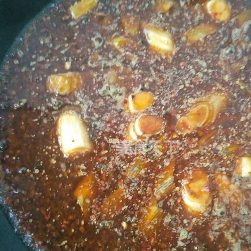 第8步、放蔥段,薑片,花椒炒香。