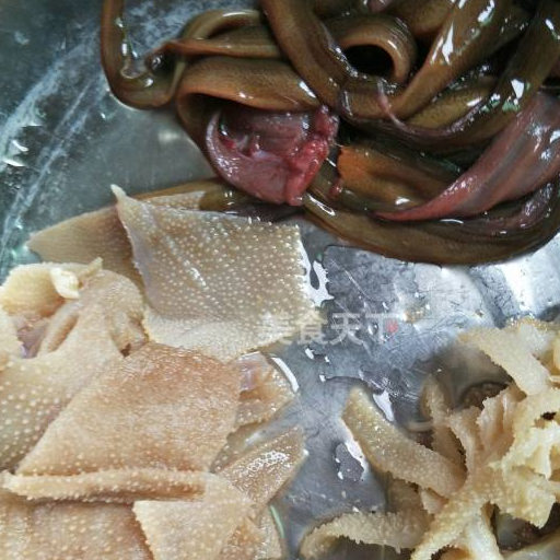 第2步、黃鱔,馬肚,毛肚分別切好。用料酒和清水反復洗凈焯水備用。