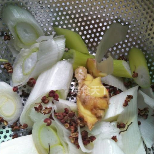 第3步、蔥切段,生薑切片兒。在準備紅花椒。