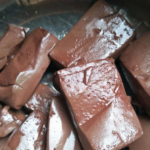 第1步、新鮮的豬血焯水冷卻。切大塊備用。